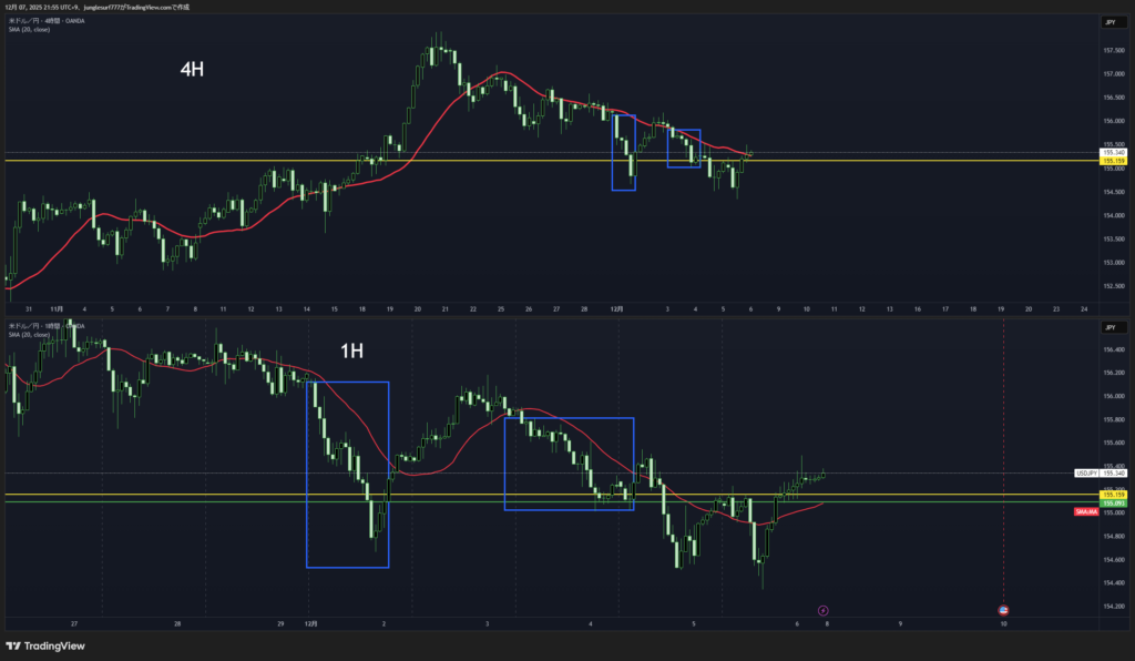 ドル円大きく2回下落したが、どちらも自分の獲物ではなかった。
