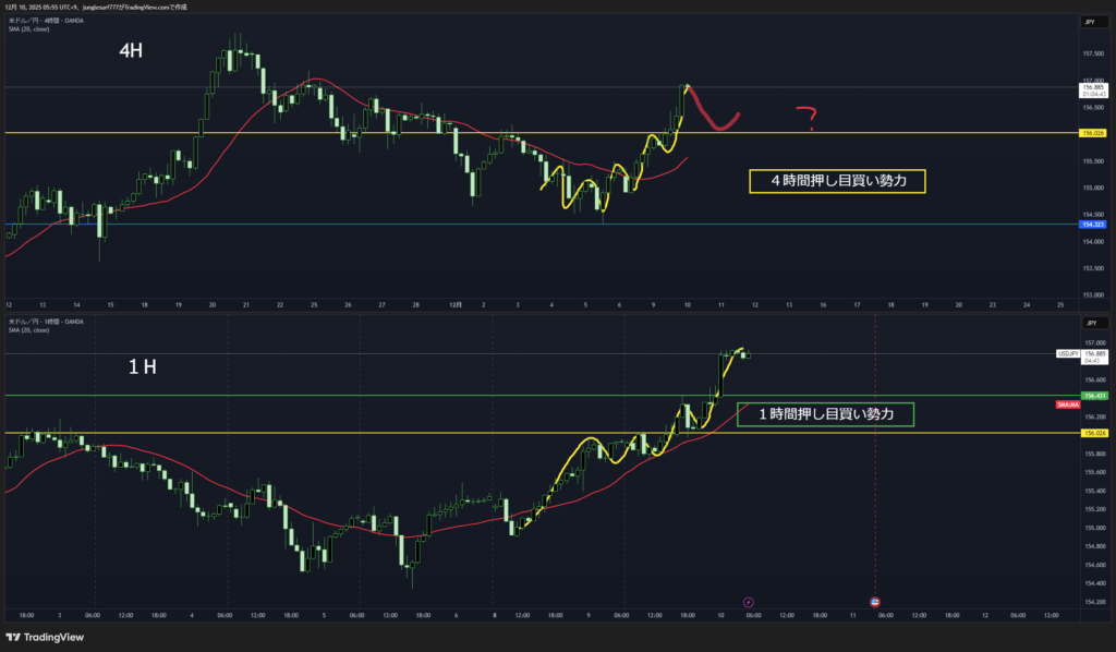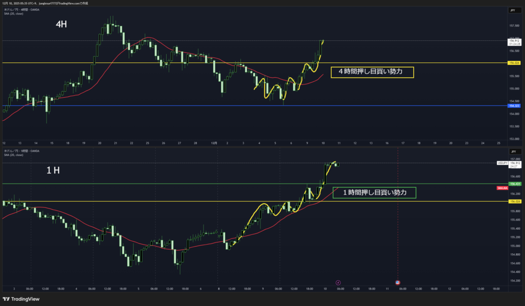 4時間足 方向は上