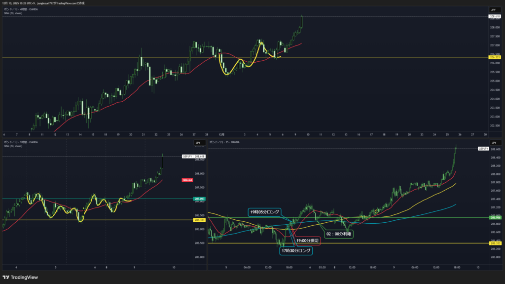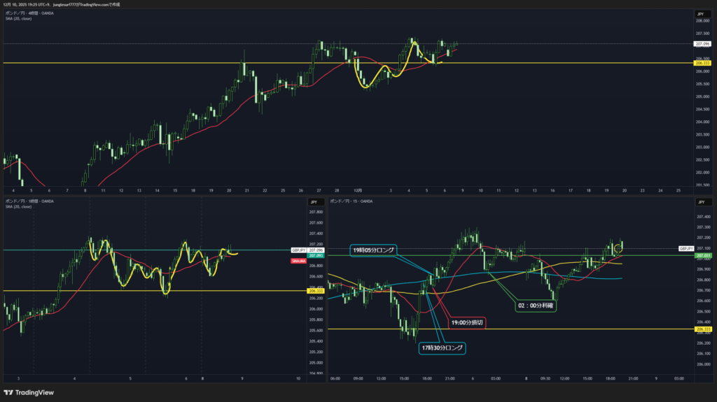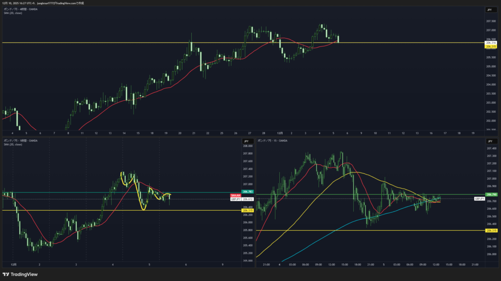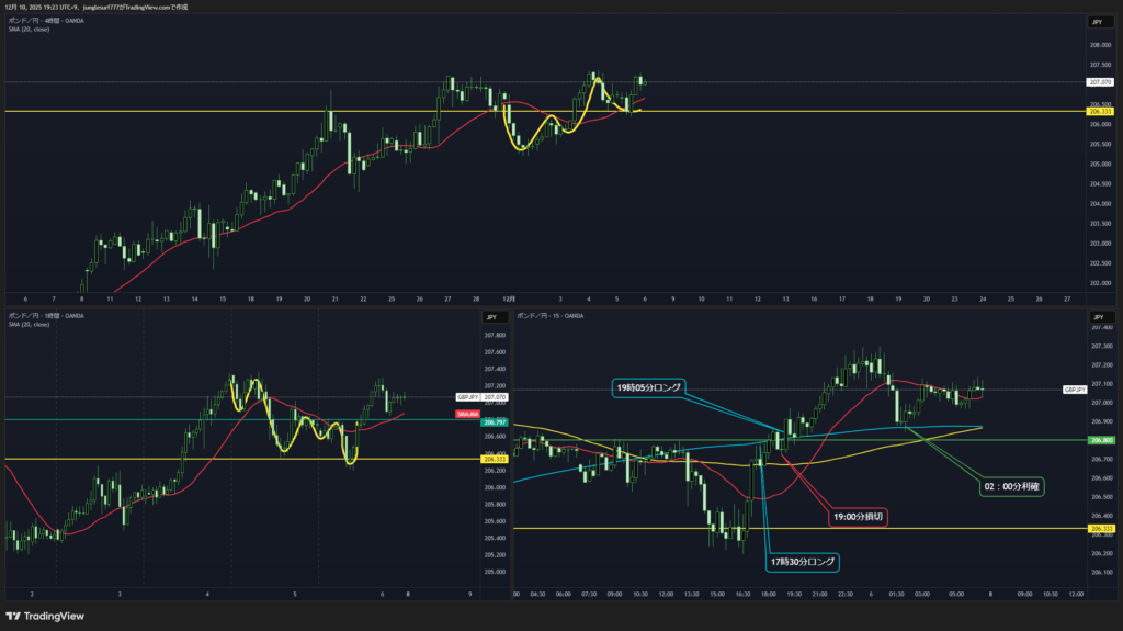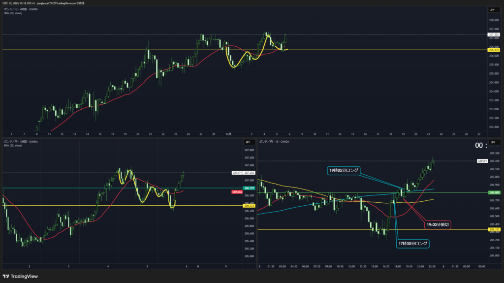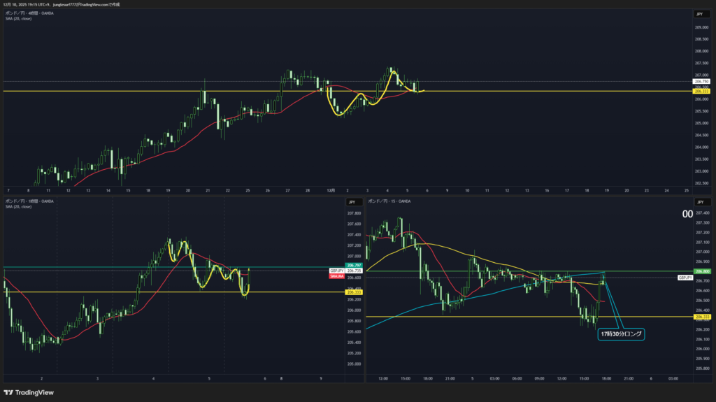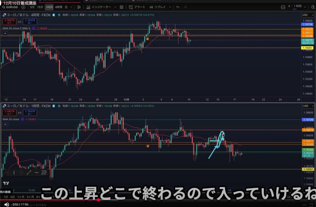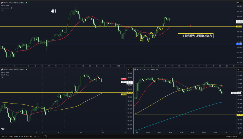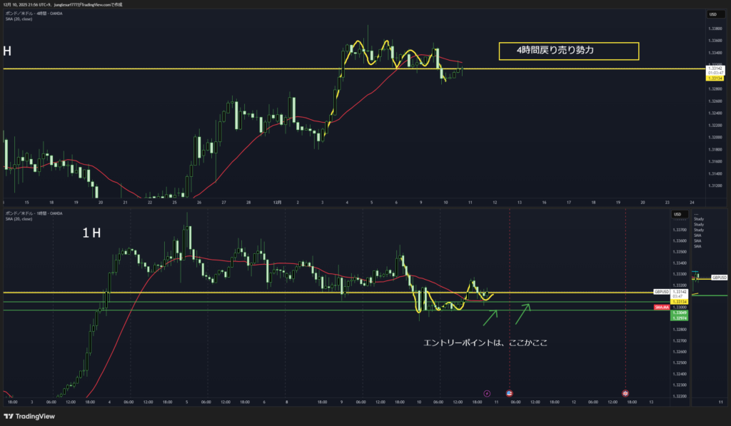 4時間の明確なトレンド転換シグナルが出て、戻り売りを待つのがセオリーだが、