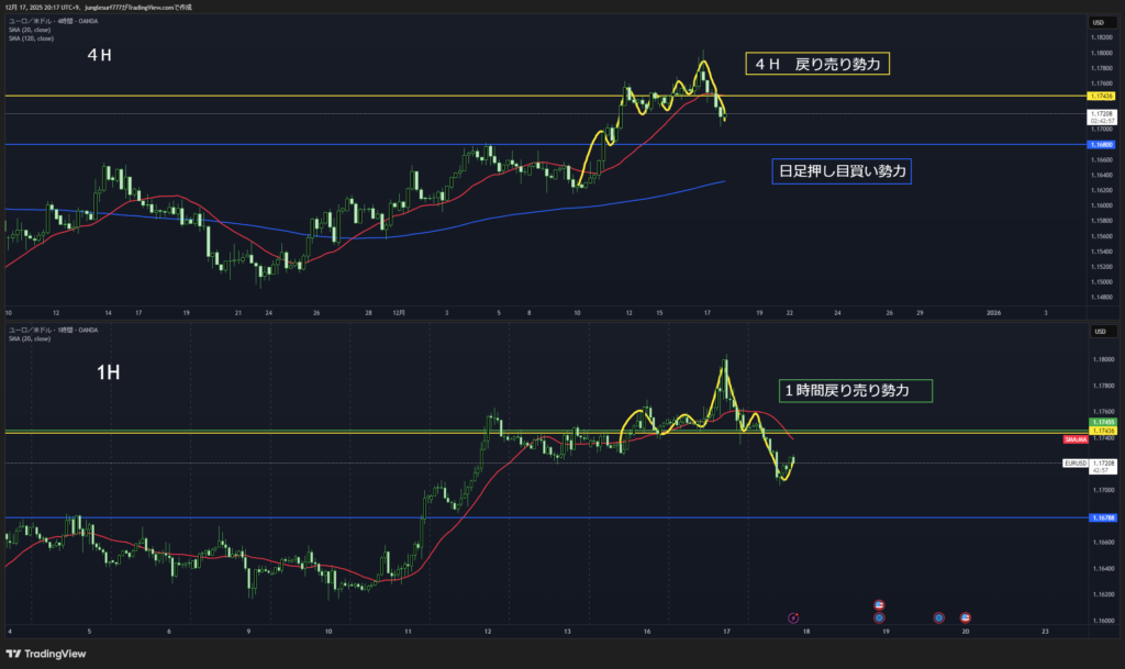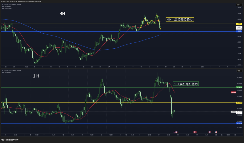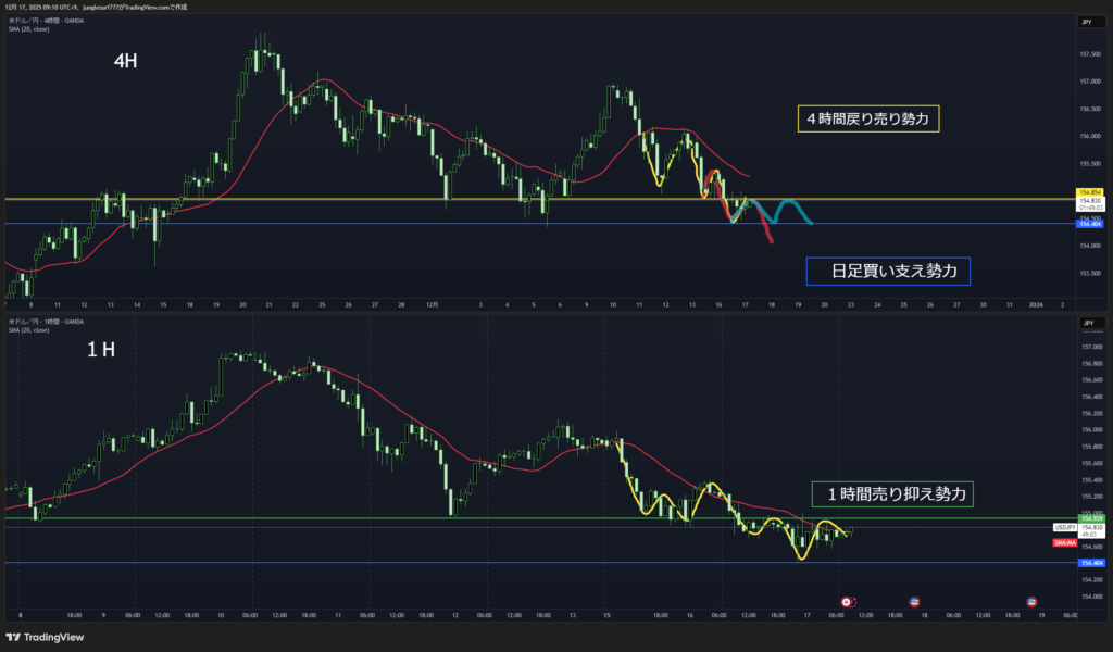 4時間は戻り売りがセオリーだが日足ブレイク