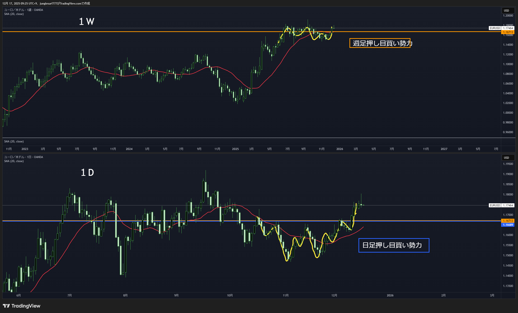オレンジの水平線で押し目買いが入り易い