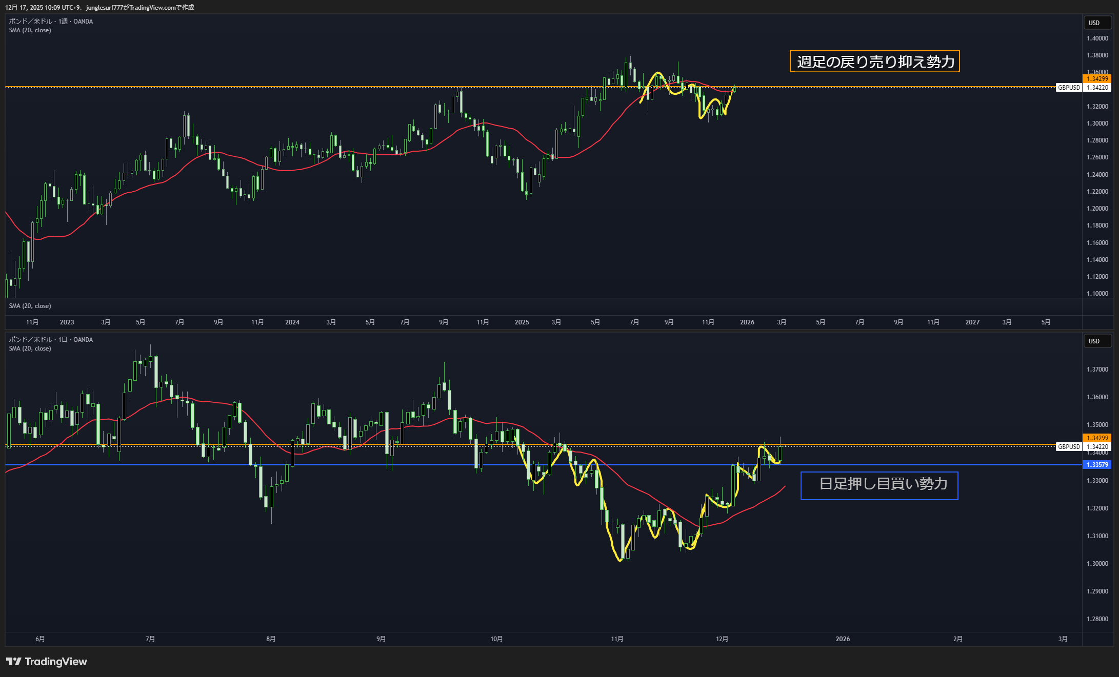 MAは下向きでレートと乖離している、MAに引き戻す力が働きやすい