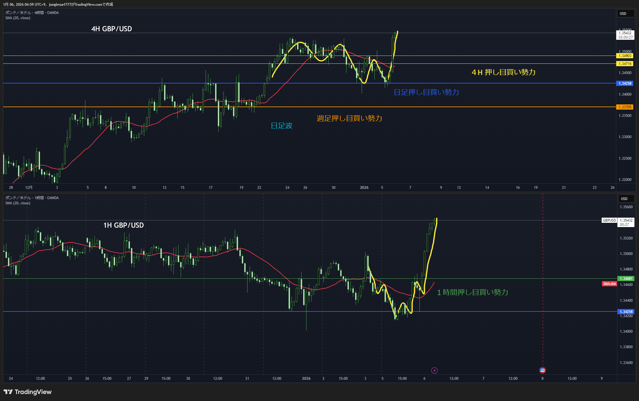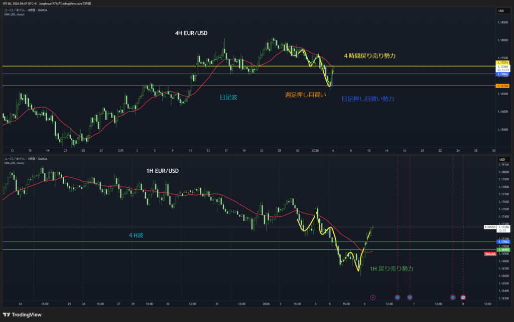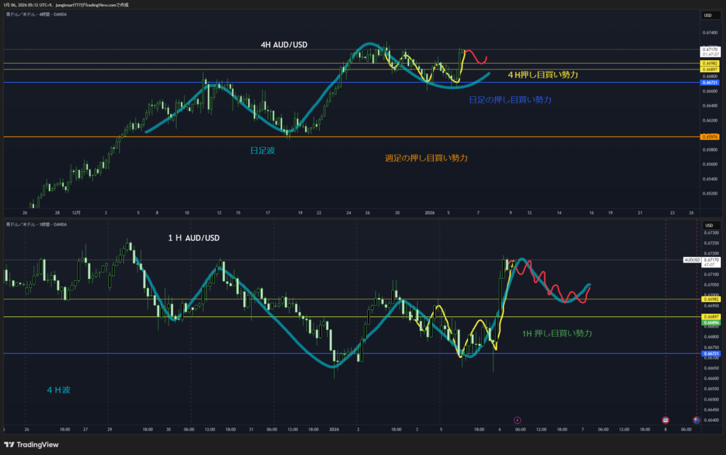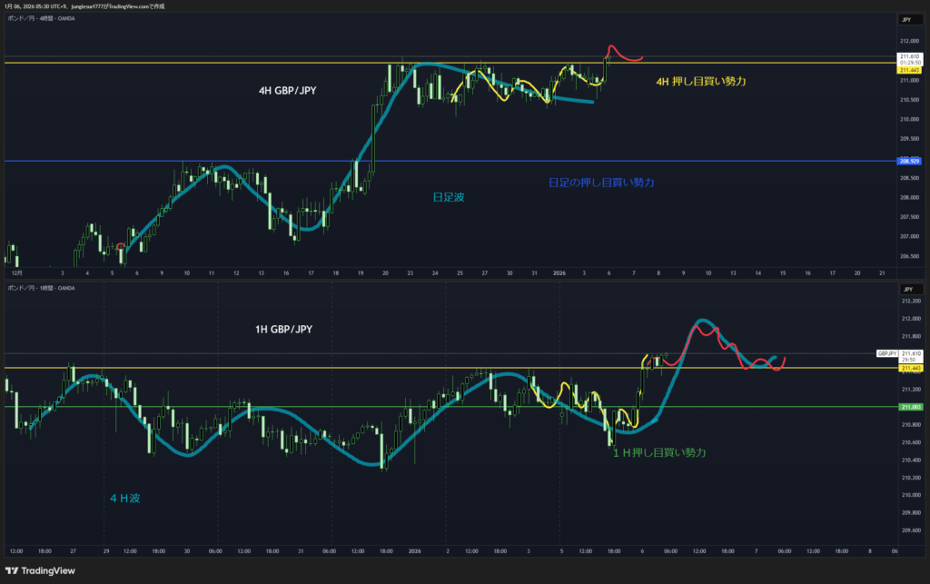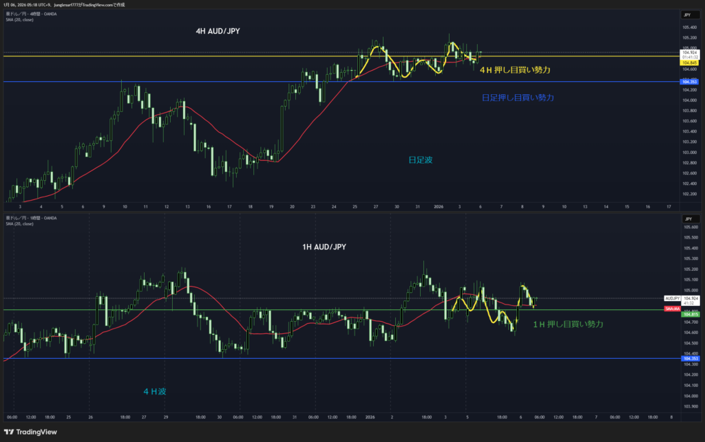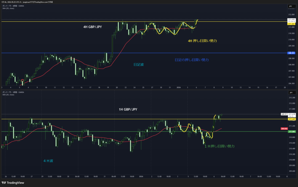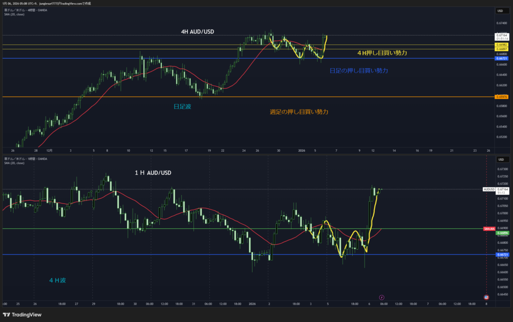 日足押し目買いエリアの4時間の押し目買いを待つ