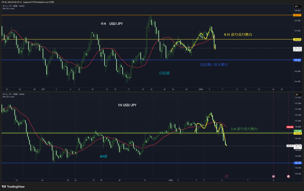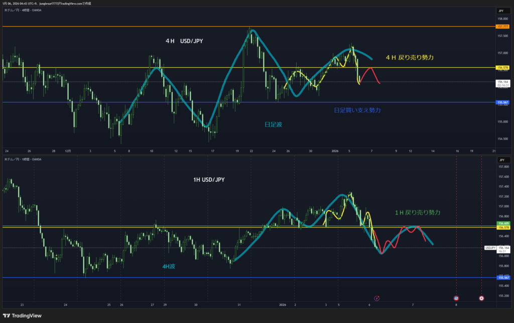 セオリーでは4時間の戻り売り。