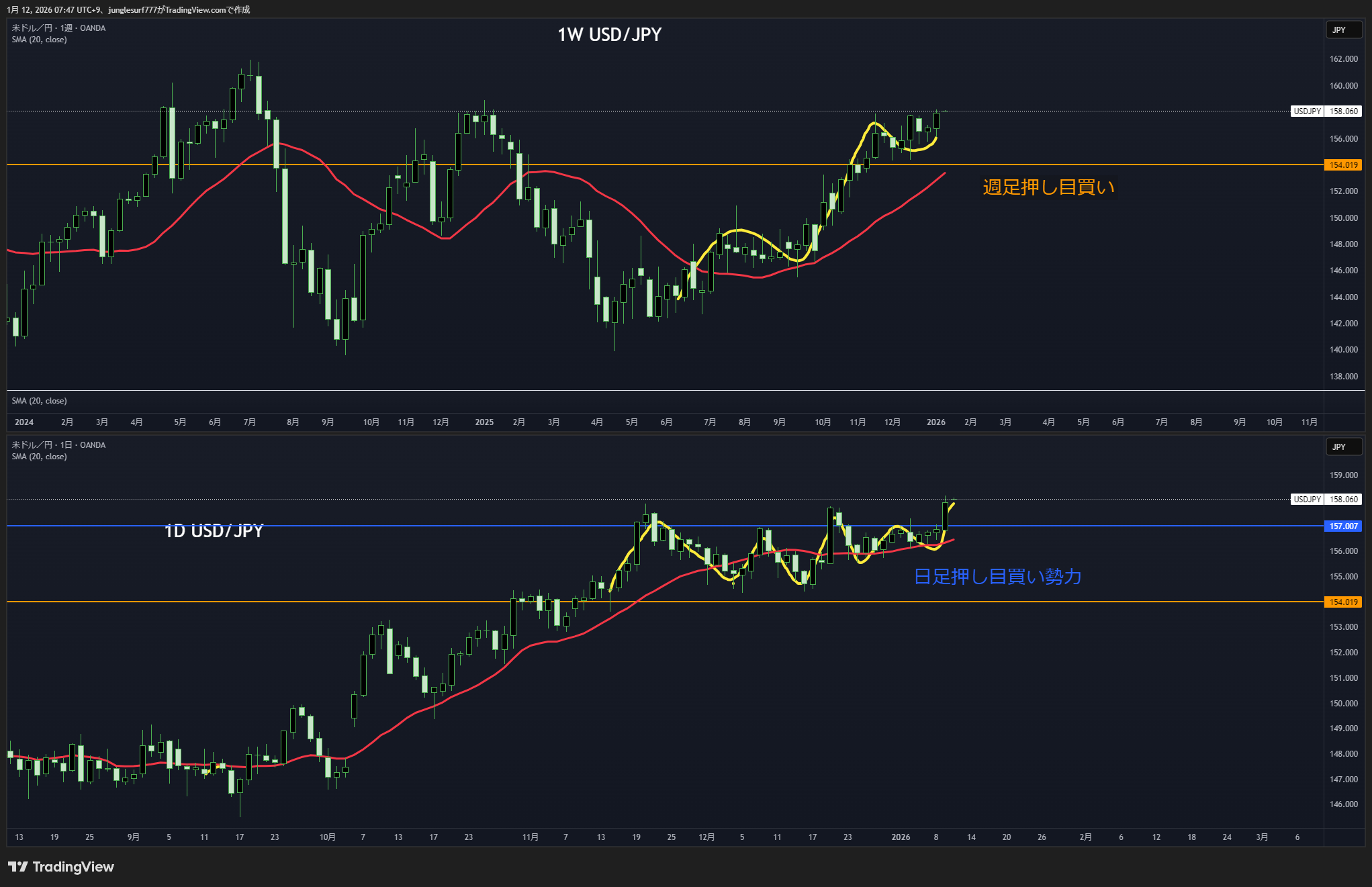 黄色の水平線で押し目買いが入りやすい