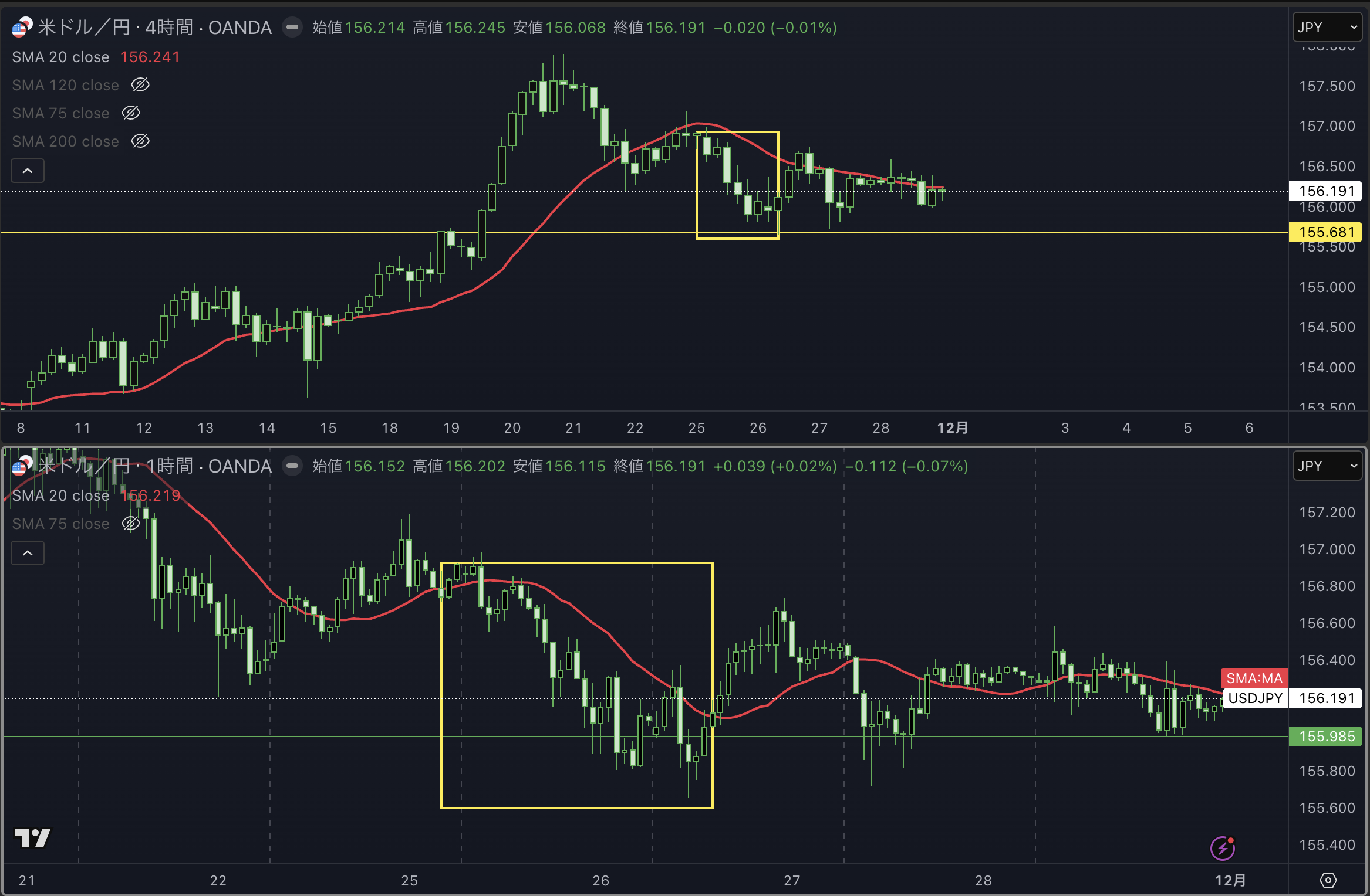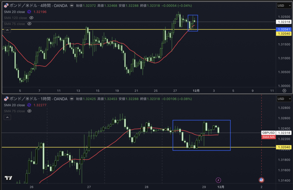 日足の高値を超えてトレンド転換したので、4時間も押し目買いが来るか?