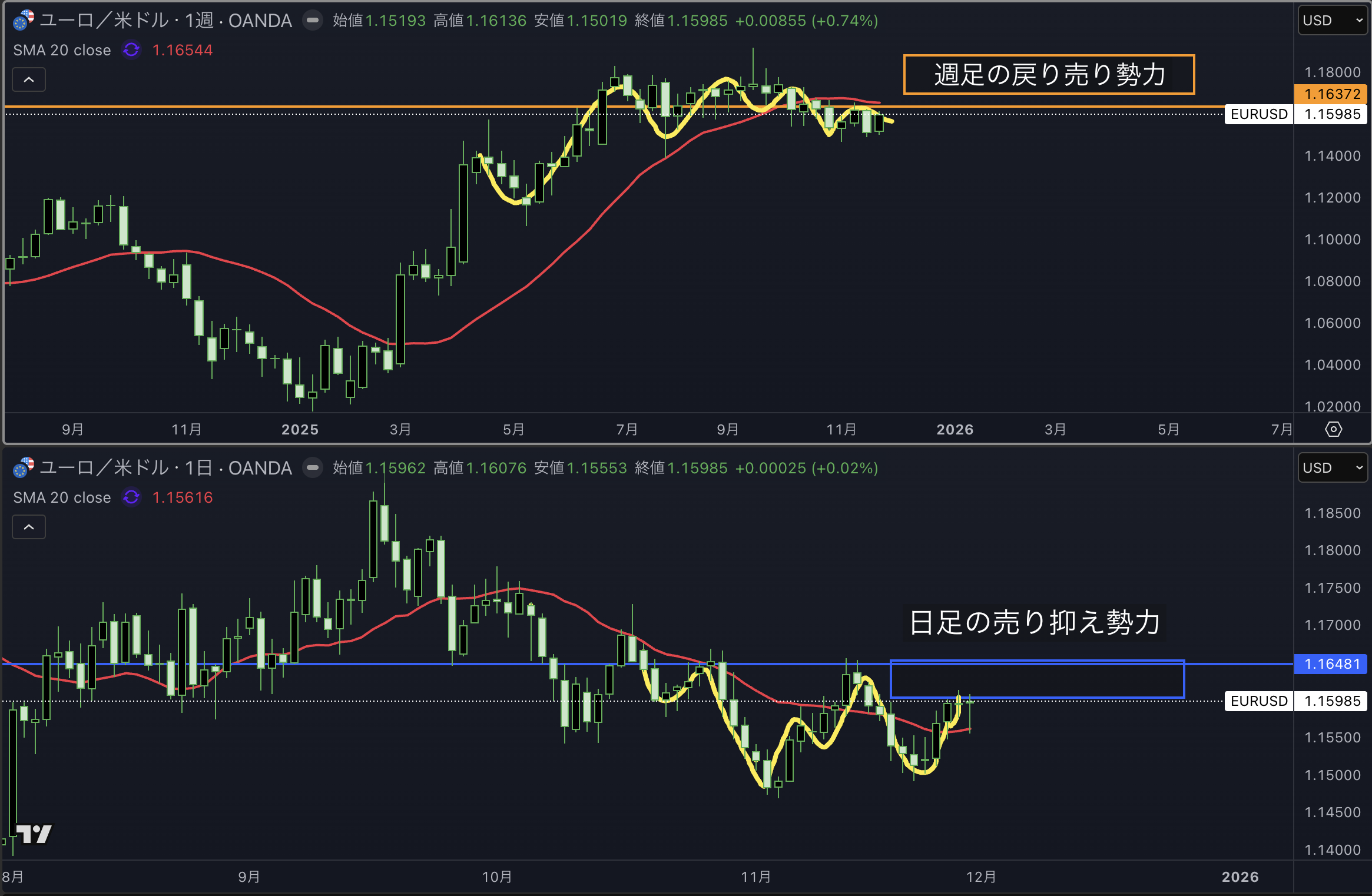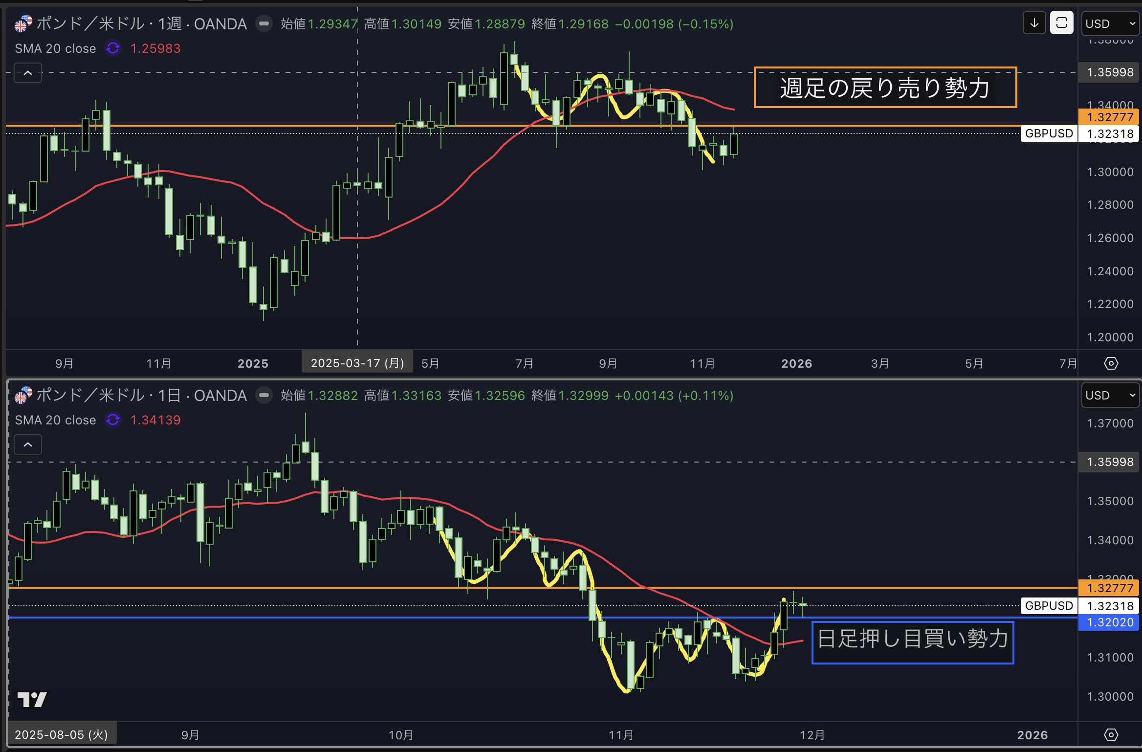 週足戻り売りレジサポエリアで、日足のトレンド転換シグナルが出た週だった。