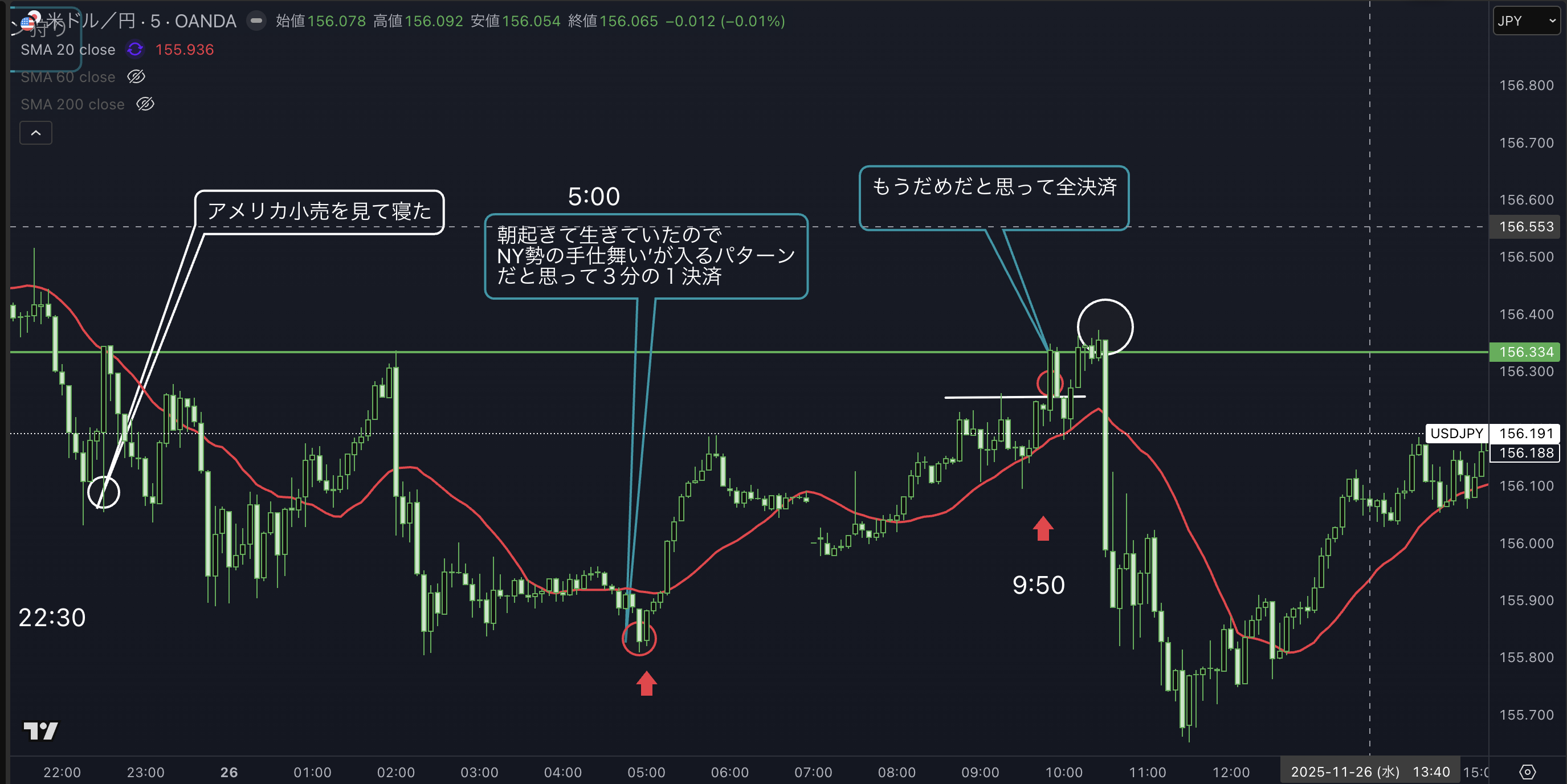 想定より早くエントリーポイントが来てしまったため、どうしようか悩んだ、今までは、悩まずに入っていたので、それだけでも成長したと感じる。